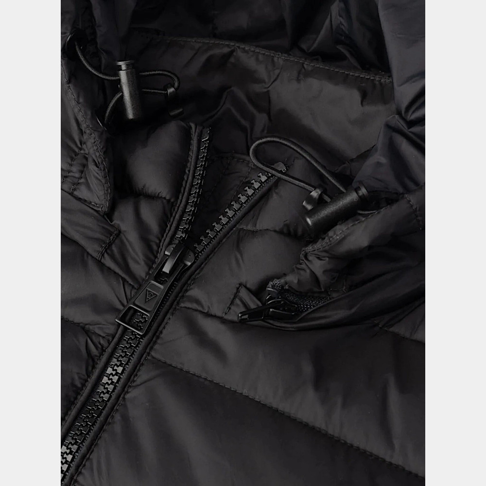 Kurtka damska Czarna Guess/ Women’s jacket Black Guess – Zimowa kurtka z kapturem i logo. Ciepła, wygodna i stylowa.