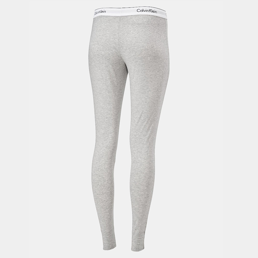 Wygodne i stylowe legginsy damskie Calvin Klein w odcieniu szarości, z charakterystycznym białym ściągaczem w pasie z logo. Wykonane z elastycznego materiału, idealne na co dzień, trening lub relaks.