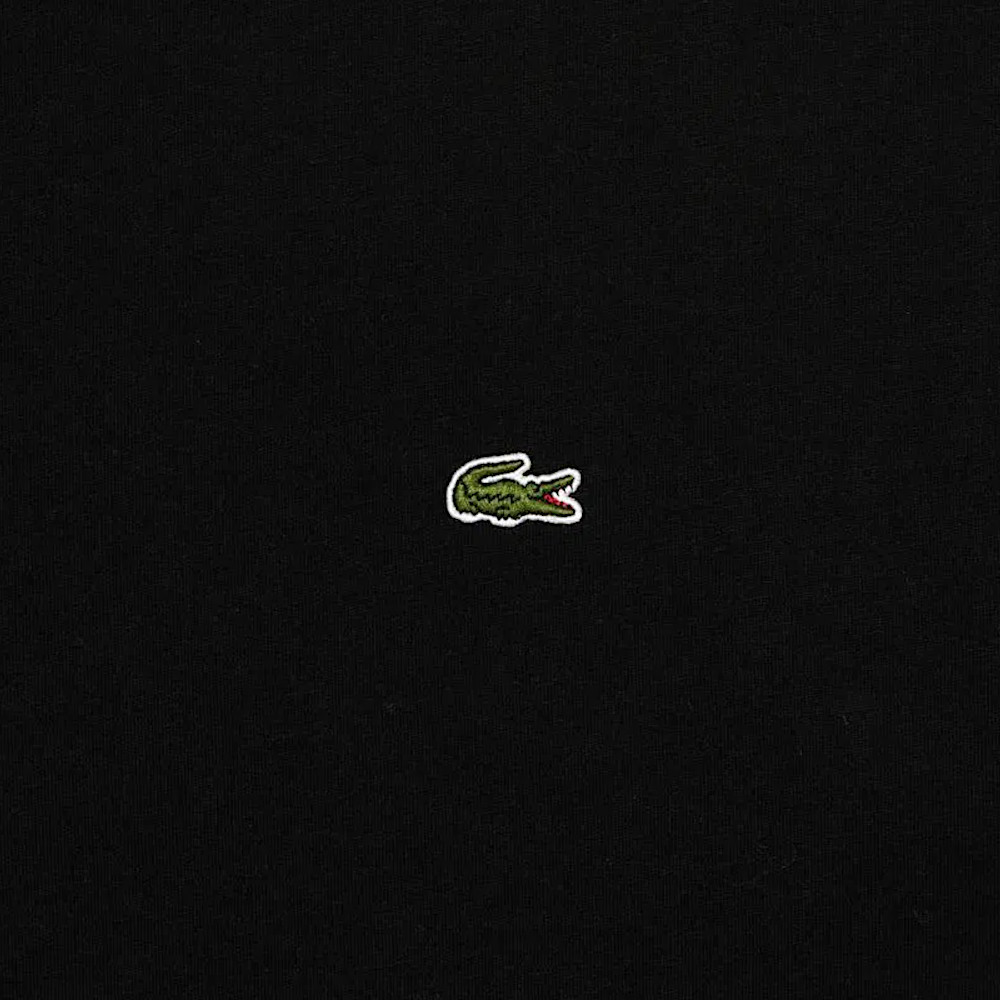 Męski t-shirt Czarny Lacoste / Man’s T-shirt Black Lacoste – Czarny t-shirt męski Lacoste z małym logo krokodyla na piersi to klasyczna koszulka z prostym krojem, idealna na co dzień. Wykonana w 100% z bawełny, zapewnia komfort i przewiewność, będąc wygodnym wyborem na ciepłe dni.