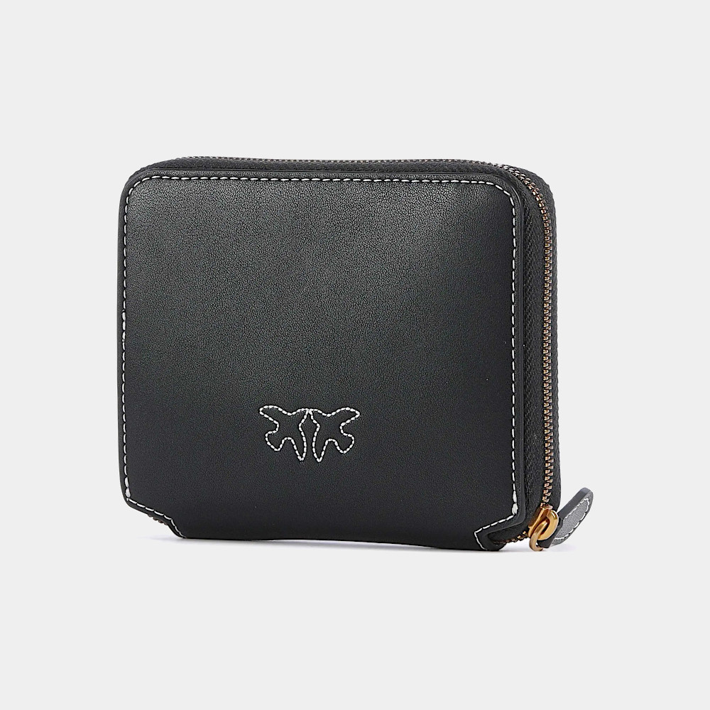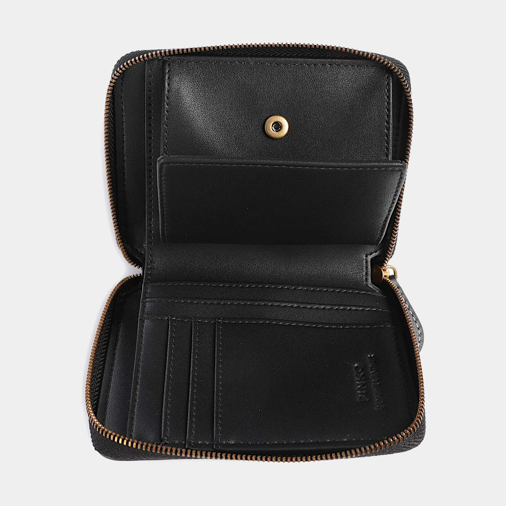 Portfel damski Czarny PINKO / Women’s wallet Pinko TAYLOR ZIP AROUND VITELLO SETA – Elegancki, kompaktowy portfel marki Pinko, idealny do mniejszych torebek. Wyposażony w przegrody na karty i kieszonkę na monety. Z przodu ozdobiony logo.