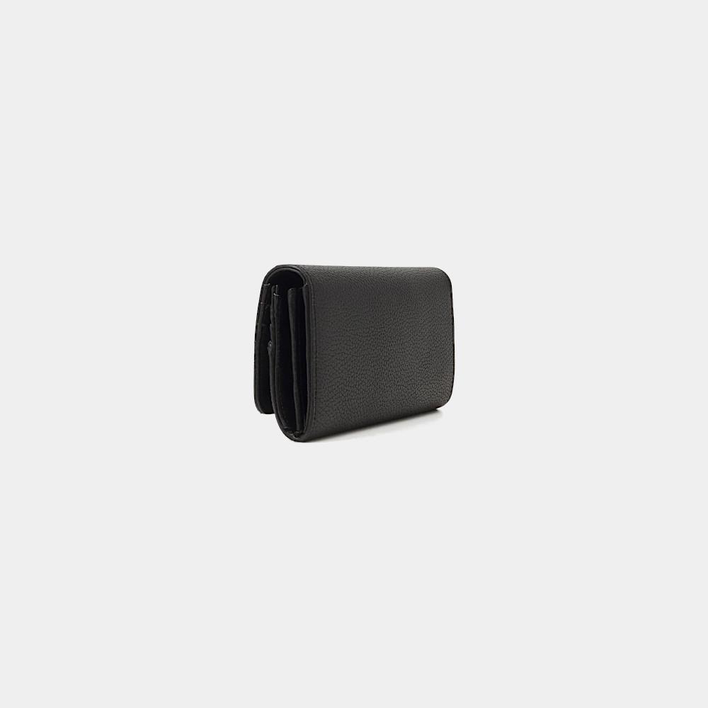 Stylowy i pojemny portfel damski od Valentino, stworzony z myślą o kobietach ceniących luksusowy minimalizm. Klasyczna czerń w połączeniu ze złotym logo na przodzie nadaje mu elegancki i ponadczasowy charakter.
