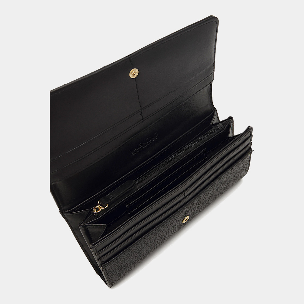 Portfel damski Czarny Valentino / Women’s wallet Black Valentino – Elegancki, duży portfel damski marki Valentino w klasycznej czerni. Z przodu zdobiony efektownym, złotym logo.
