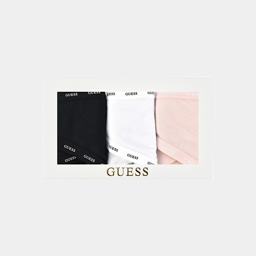 Stringi Damskie 3-pack Guess / Women’s panties Guess – Damskie stringi 3-pack od Guess w kolorach różowym, białym i czarnym to komfortowe modele z miękkiej bawełny i elastanu. Elastyczna taśma z logo Guess zapewnia wygodę i nowoczesny wygląd. Idealne na co dzień.